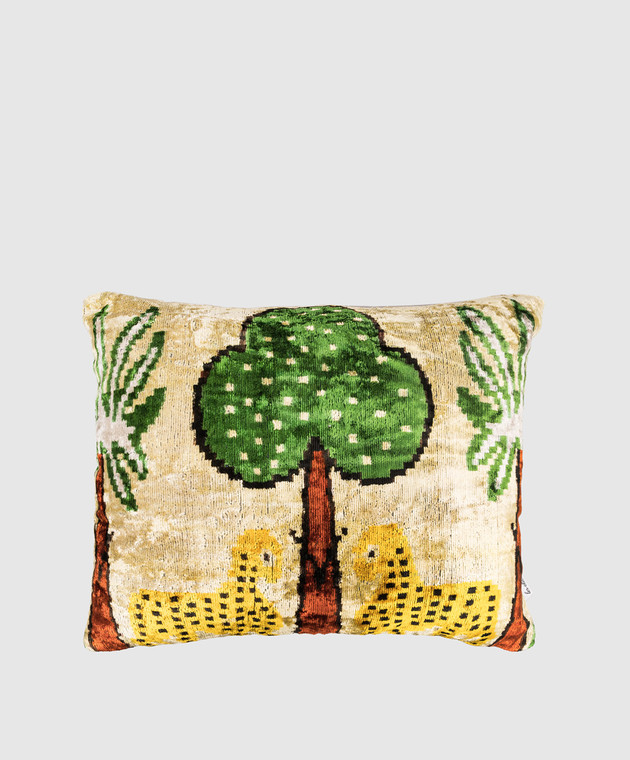 Бежевая декоративная подушка из шелка в принт