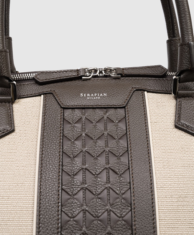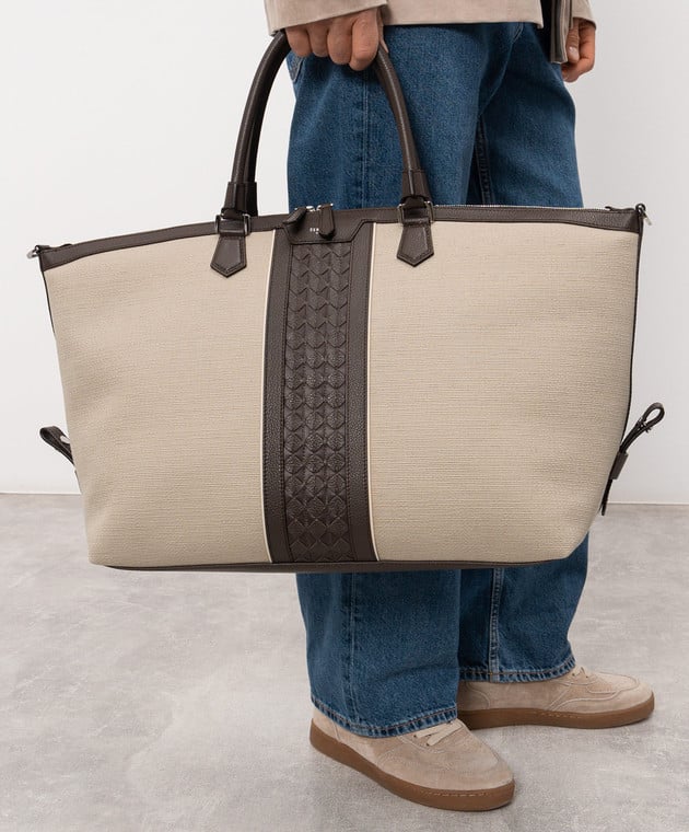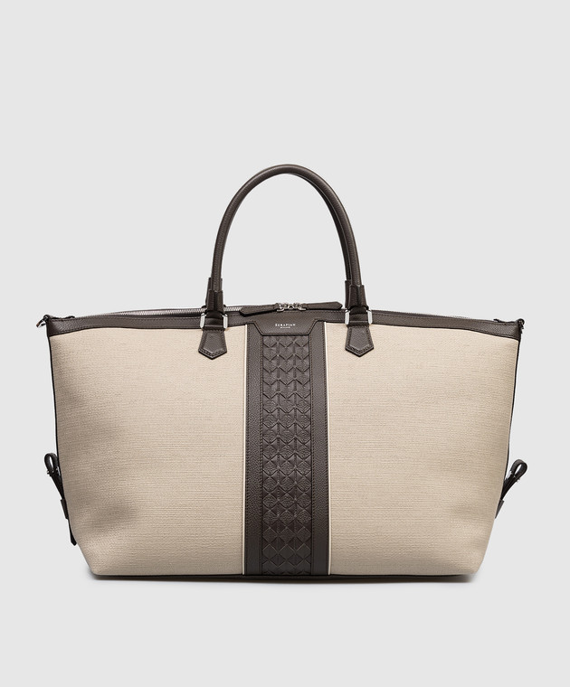 Бежевая дорожная сумка с принтом логотипа