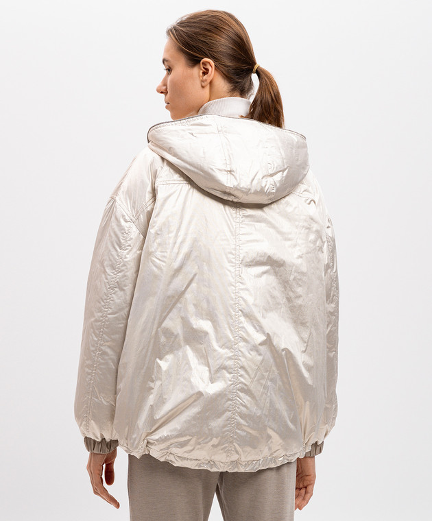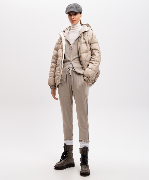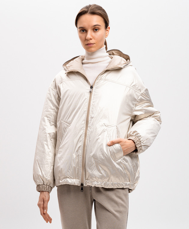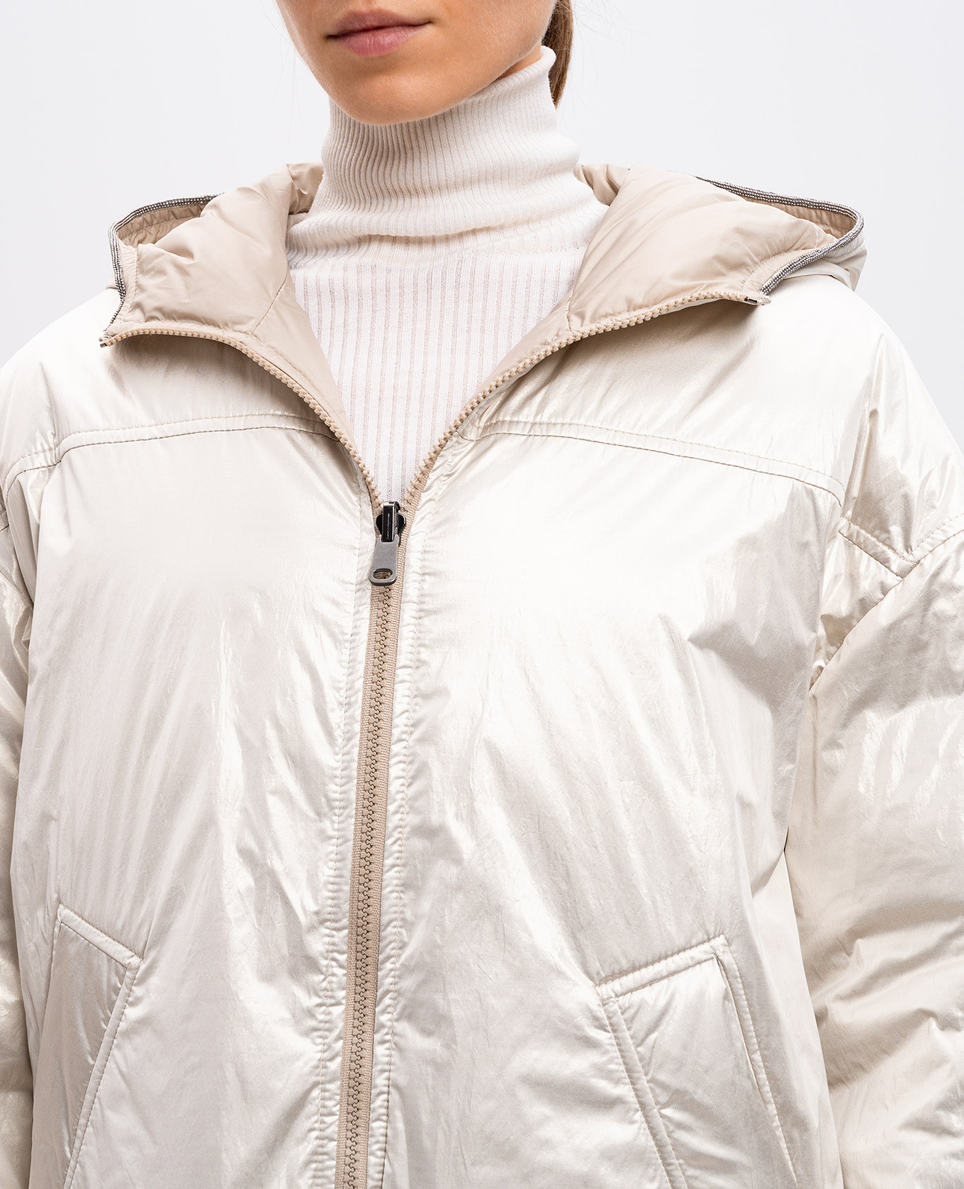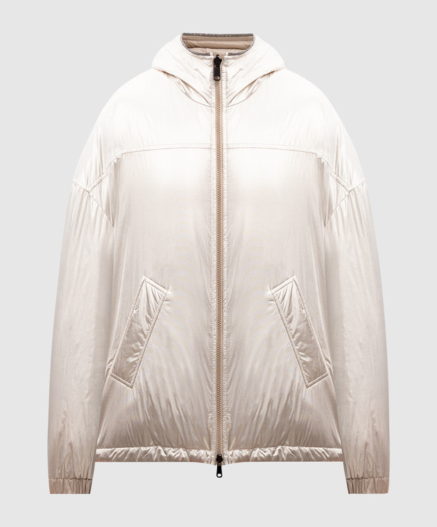 Бежевая двухсторонняя пуховая куртка с цепочкой мониль