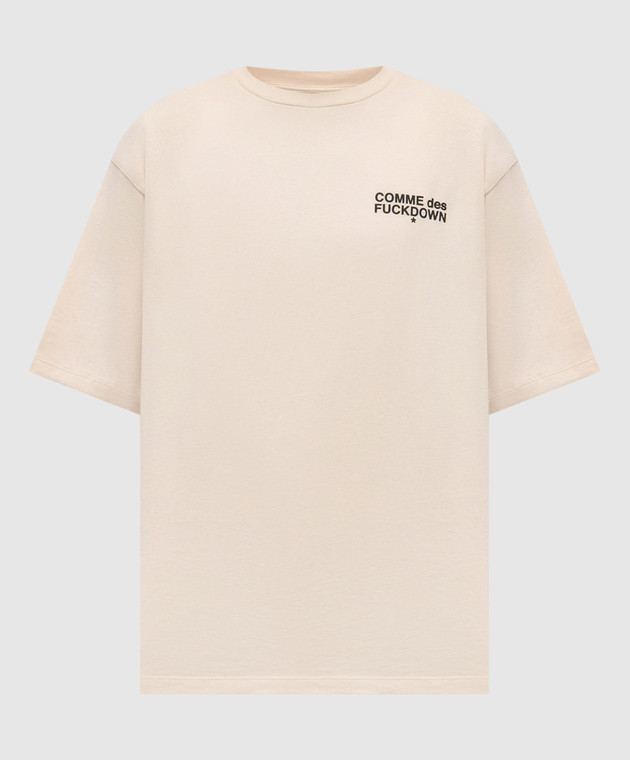 Бежевая футболка с брендовым принтом