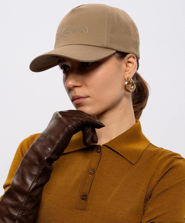 Бежевая кепка с льном с логотипом