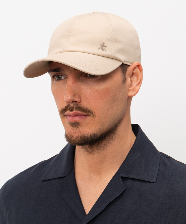 Бежевая кепка с вышивкой эмблемы