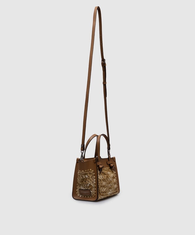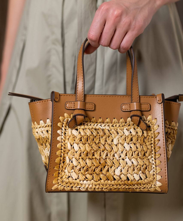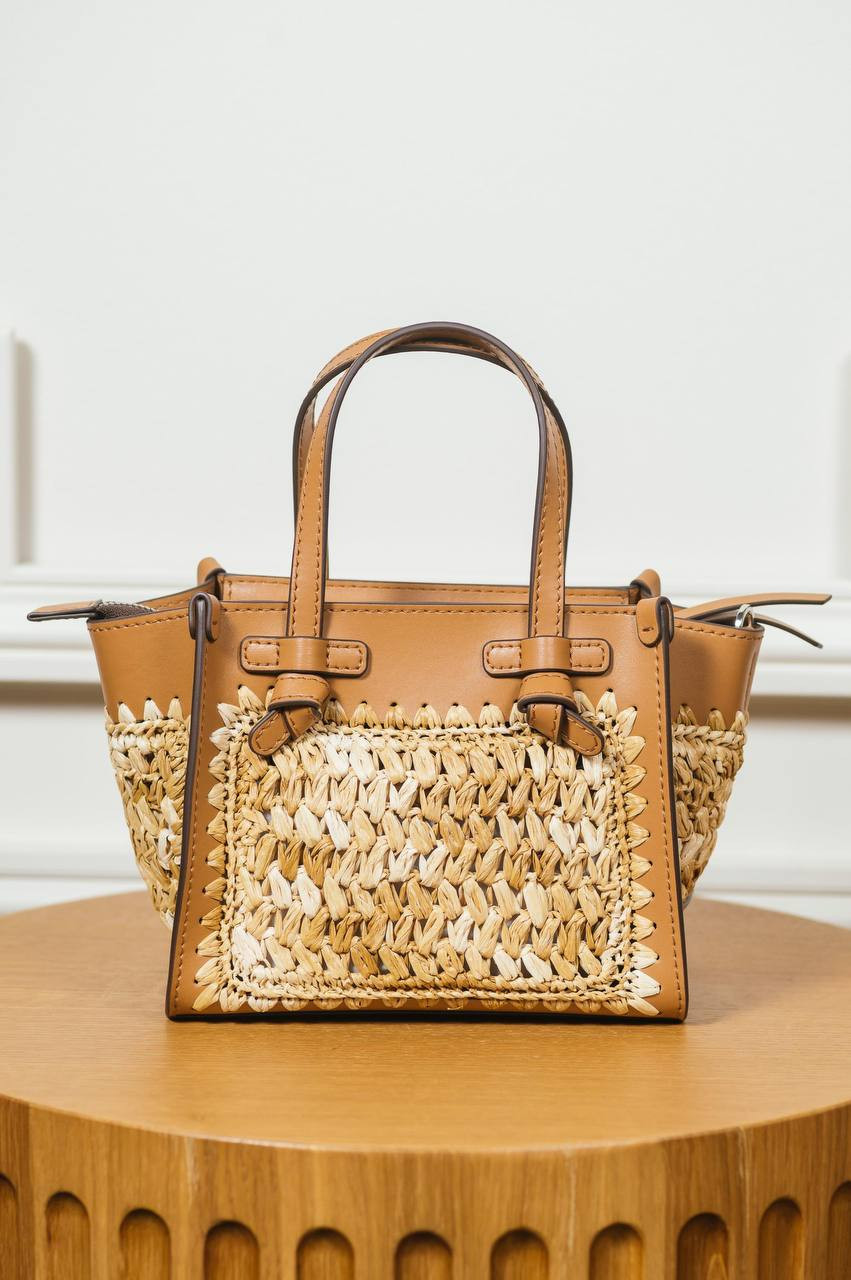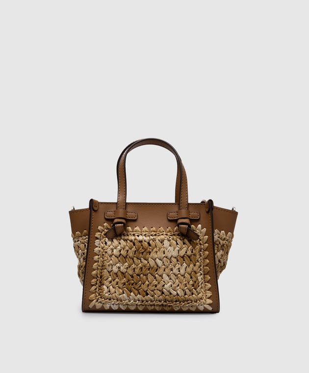 Бежевая комбинированная плетеная сумка