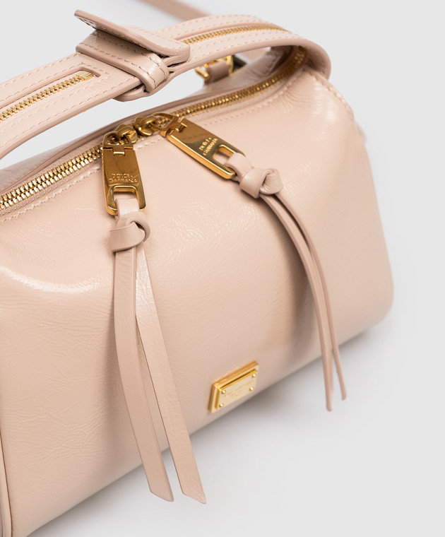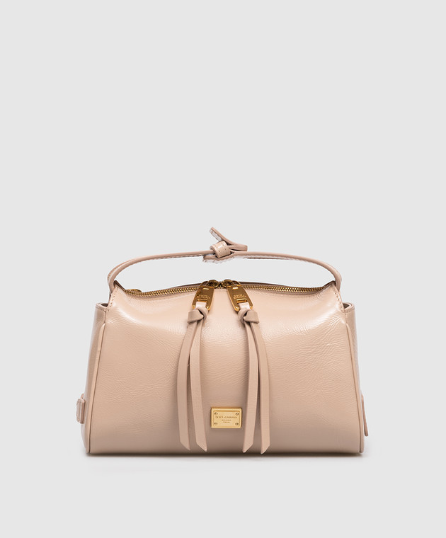 Бежевая кожаная глянцевая сумка Vittoria