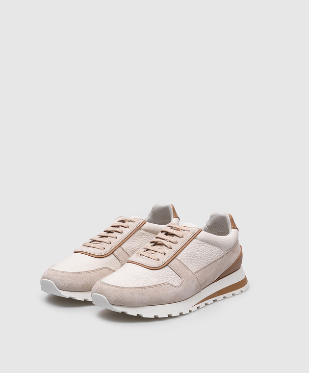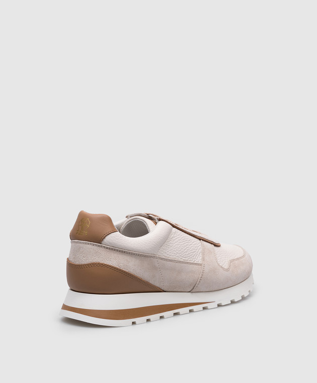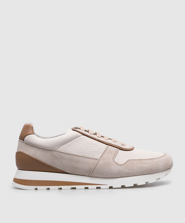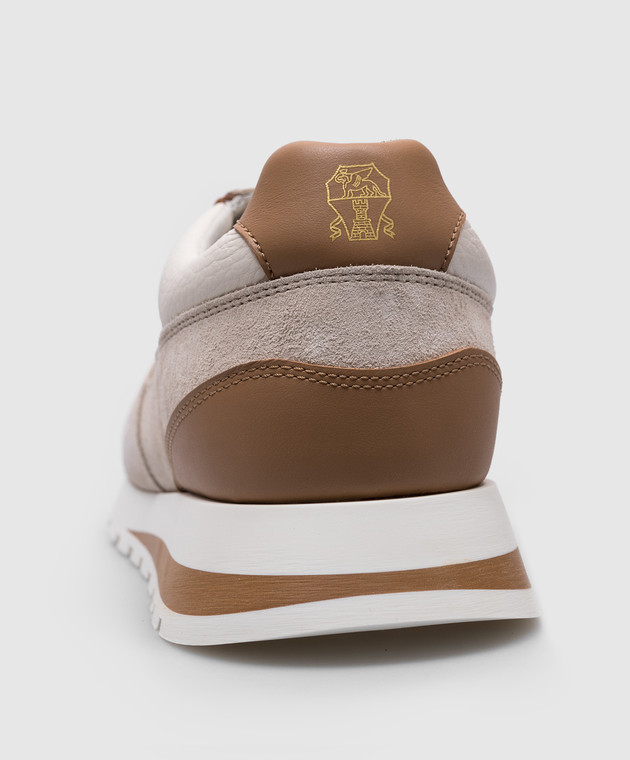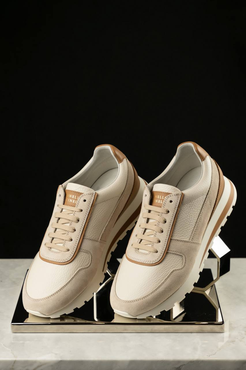 Бежевая кожаная кроссовка с патчем логотипа