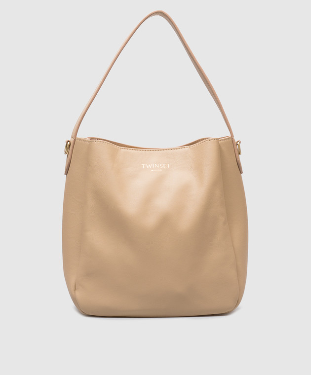 Бежевая кожаная сумка Forever с логотипом