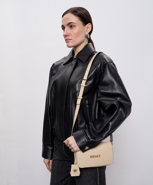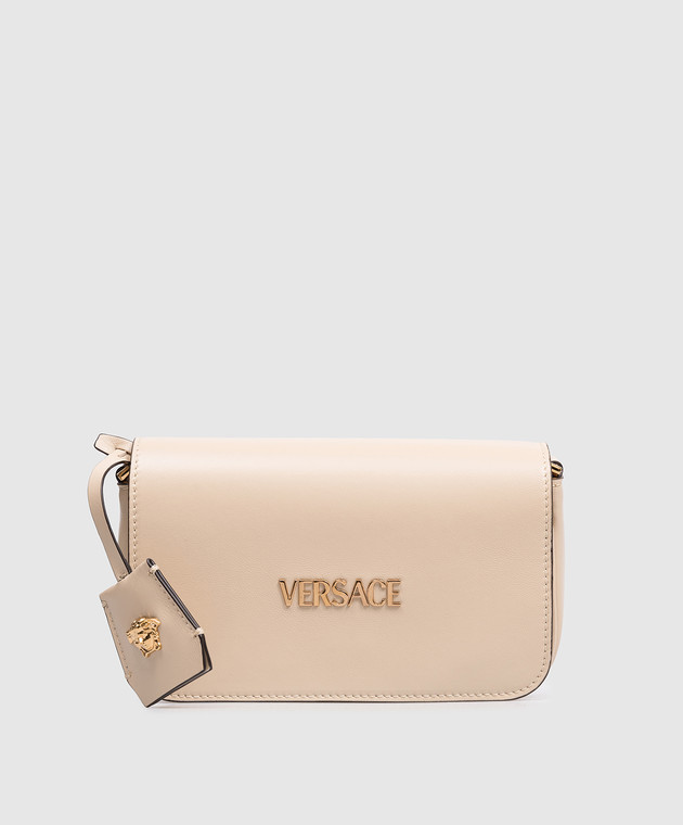Бежевая кожаная сумка кросс-боди с логотипом