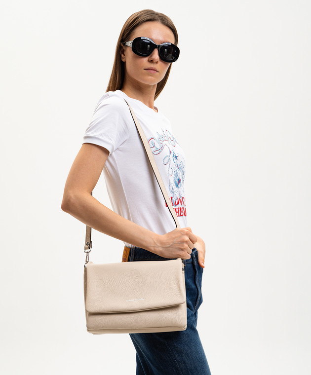 Бежевая кожаная сумка-мессенджер DOLLARO