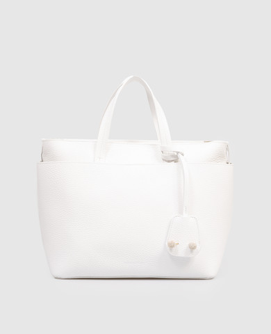 Бежевая кожаная сумка с логотипом