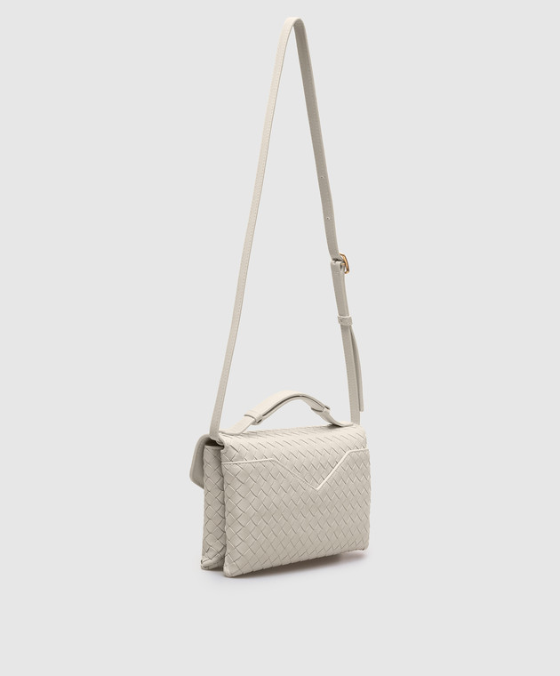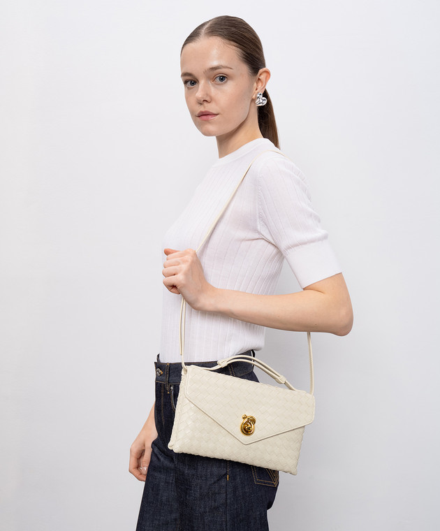 Бежевая кожаная сумка с плетением