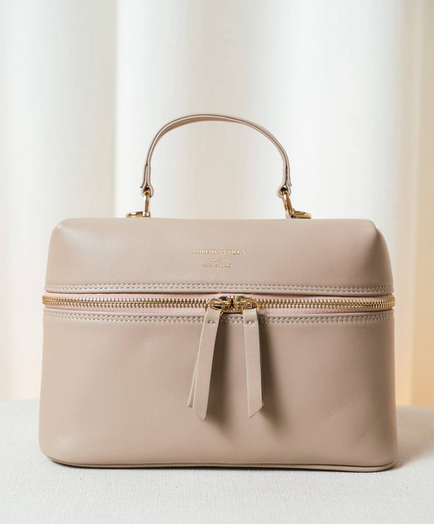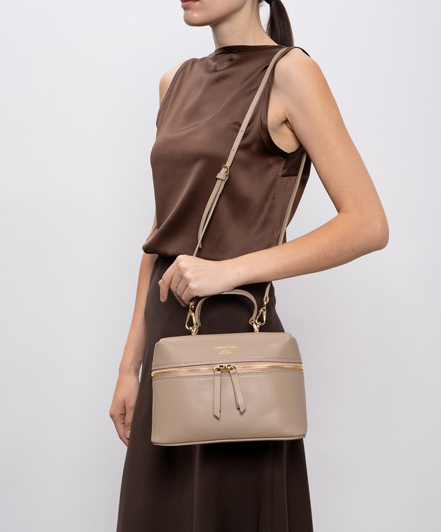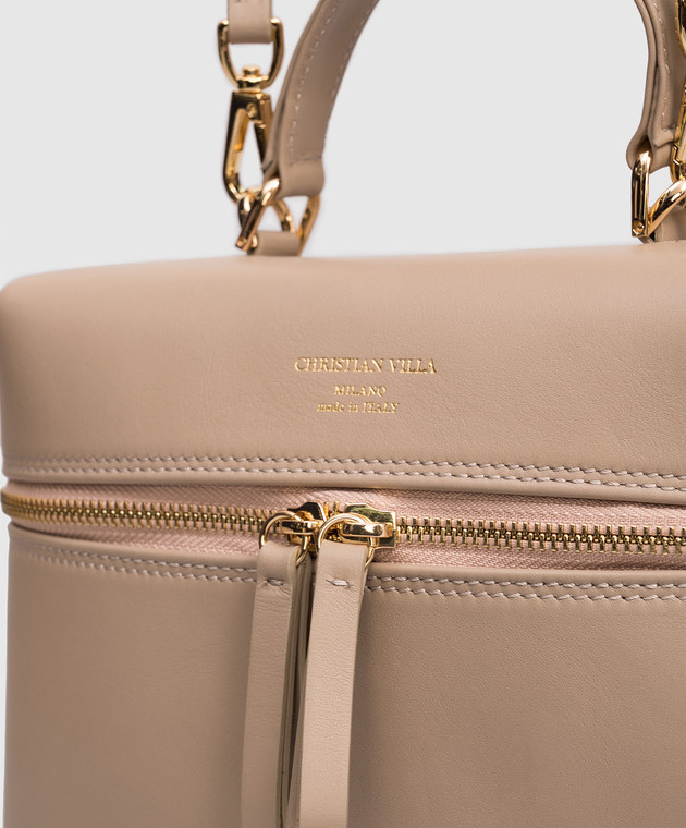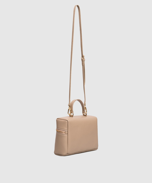 Бежевая кожаная сумка с принтом логотипа