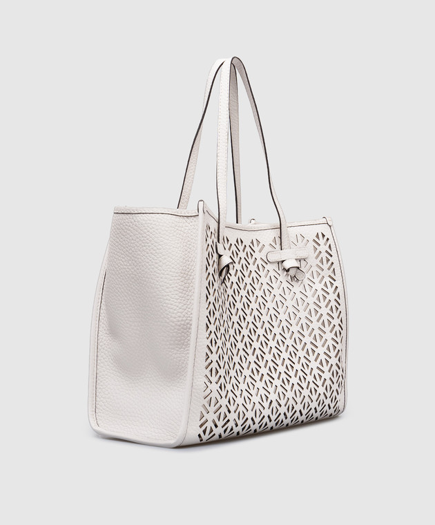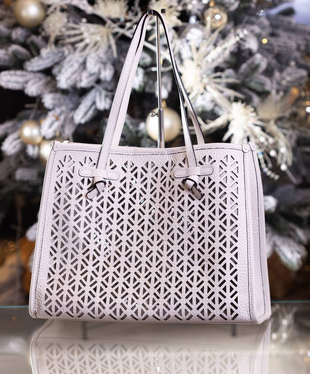 Бежевая кожаная сумка-тоут Marcella с ажурным узором