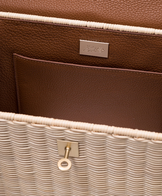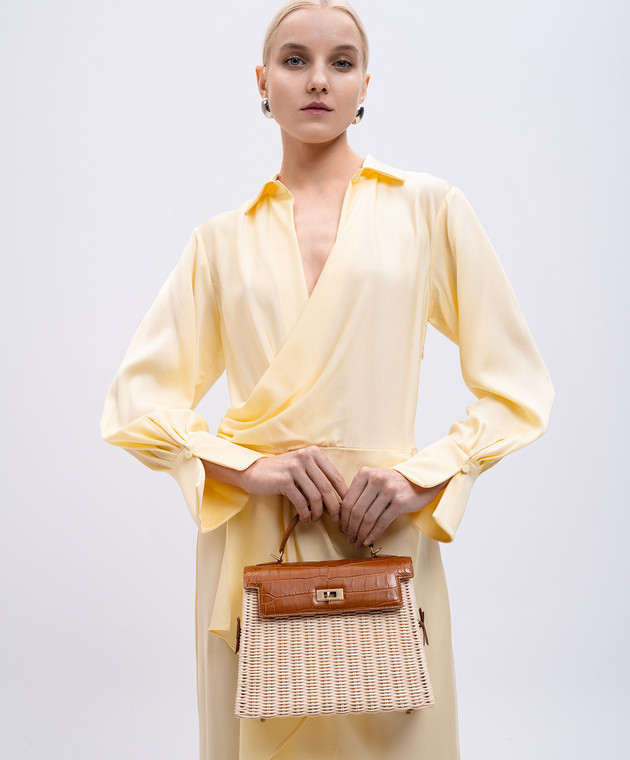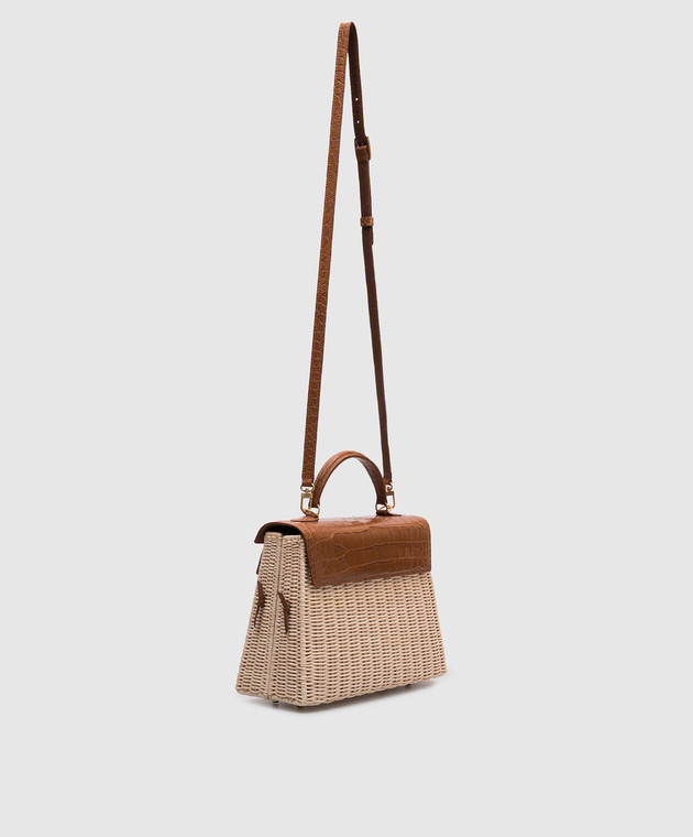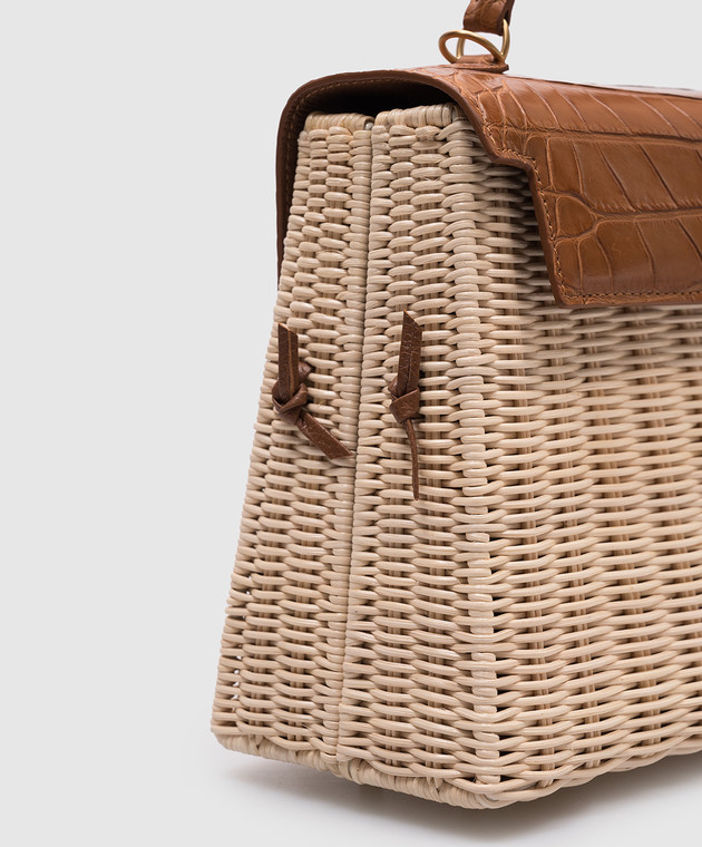 Бежевая плетеная сумка-трапеция с кожей крокодила