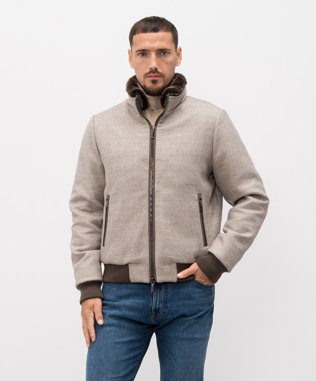 Бежевая пуховая куртка BELLATI из шерсти с мехом