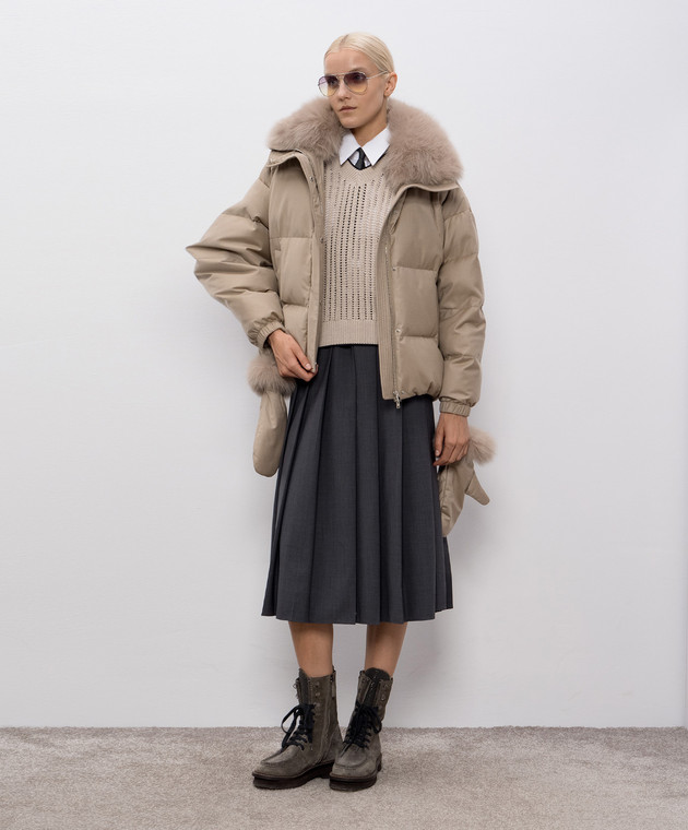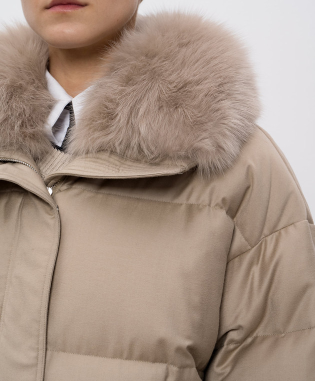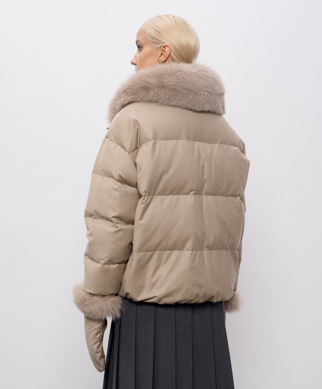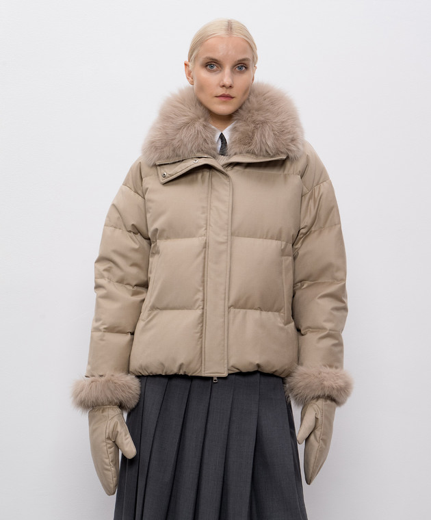 Бежевая пуховая куртка из шерсти и шелка с перчатками