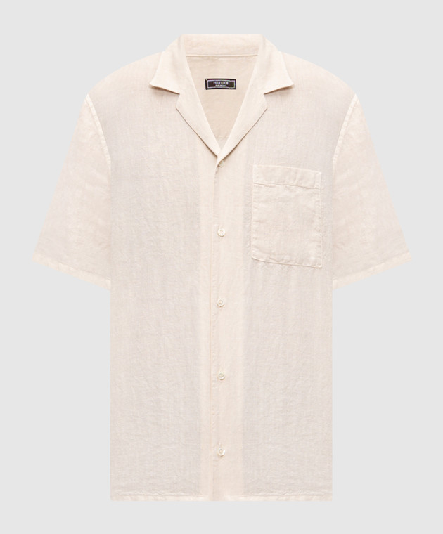 Бежевая рубашка из льна прямого кроя