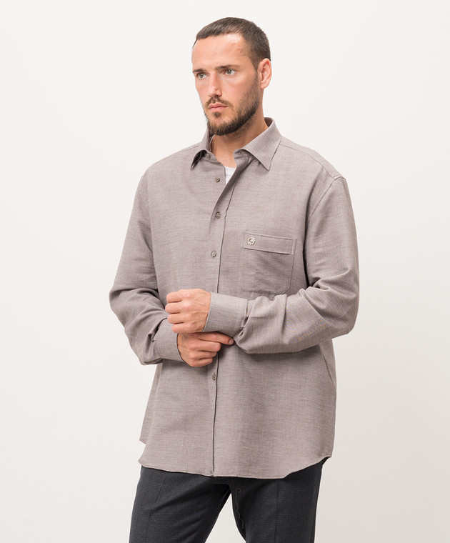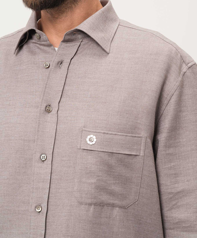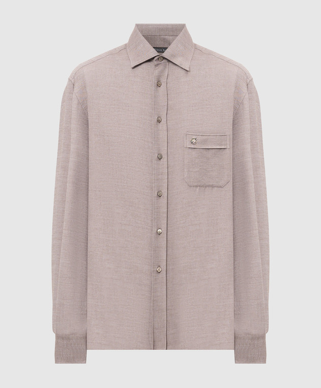 Бежевая рубашка с кашемиром с металлическим изображением головы орла