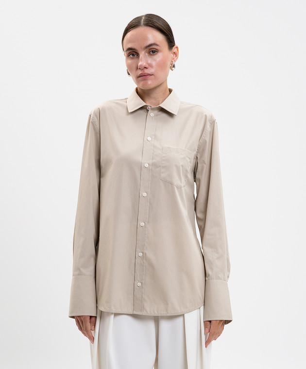 Бежевая рубашка с вышивкой логотипа монограммы