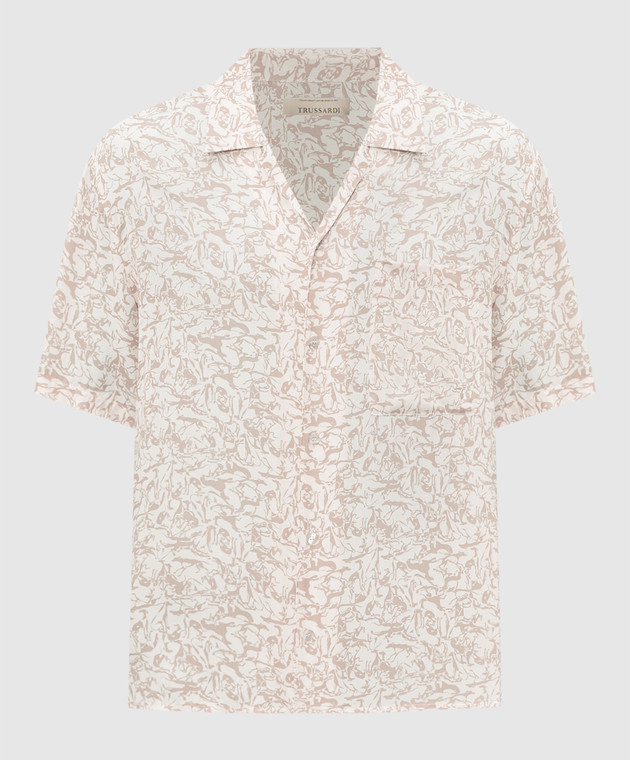 Бежевая рубашка в брендовый принт