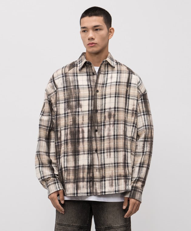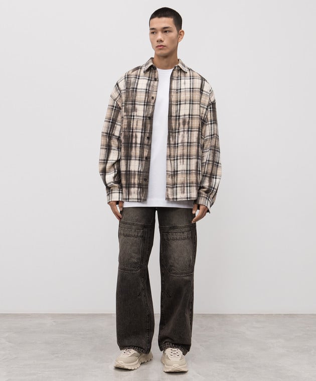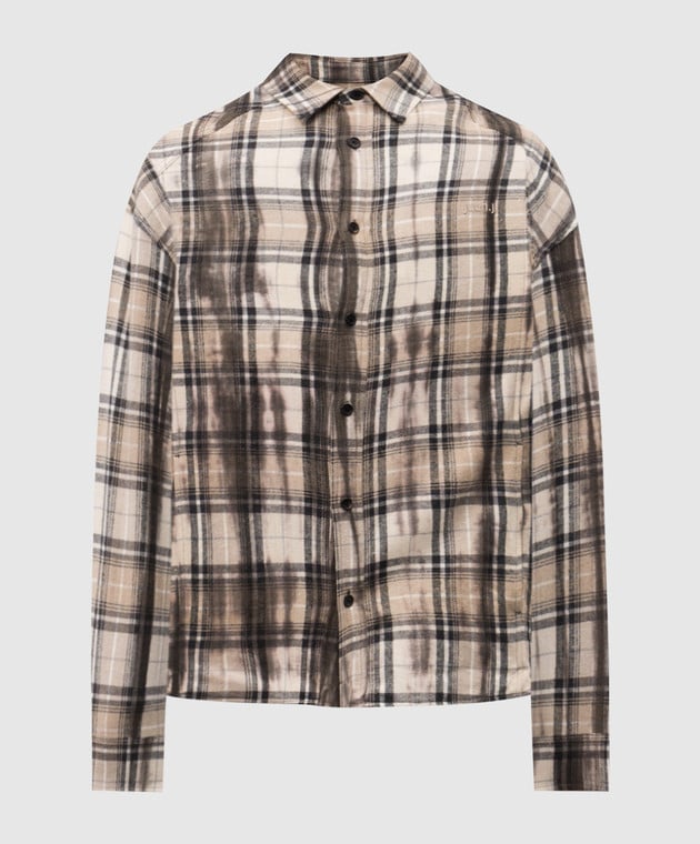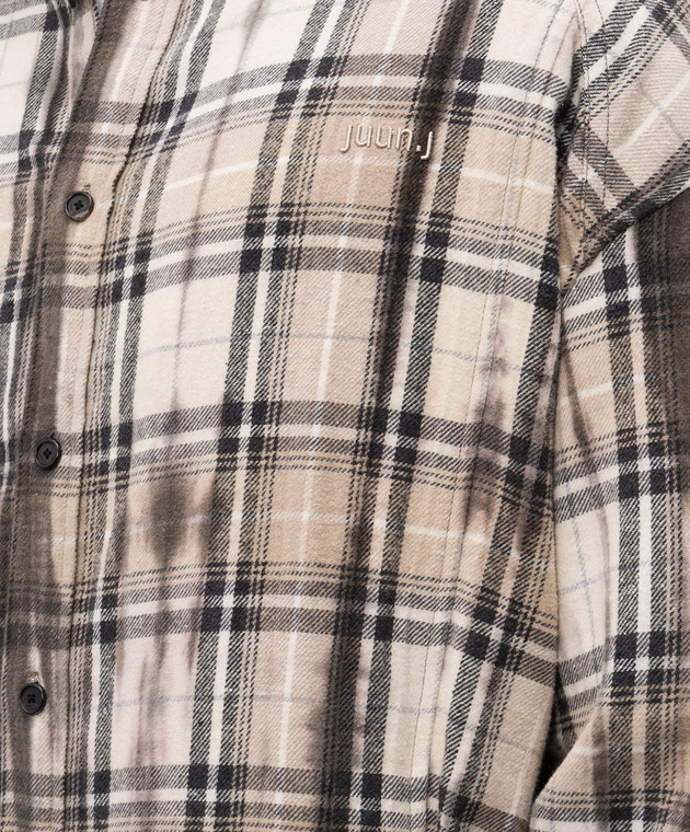 • Декор принт в виде пятен, узор клетка, вышивка логотипа, фигурный низ