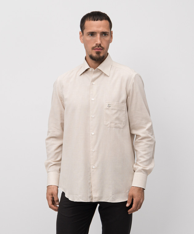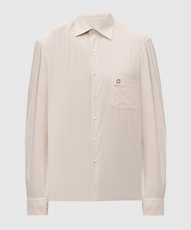 Бежевая рубашка в клетку с кашемиром