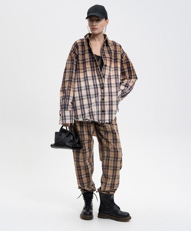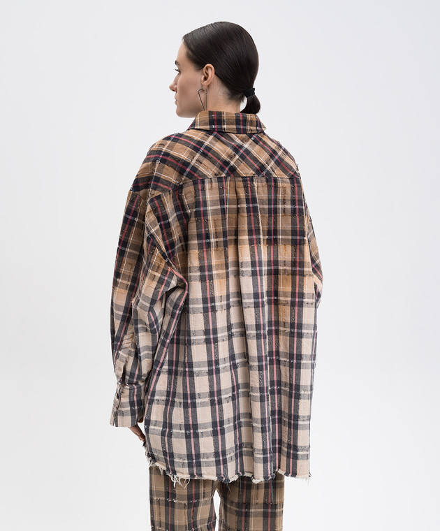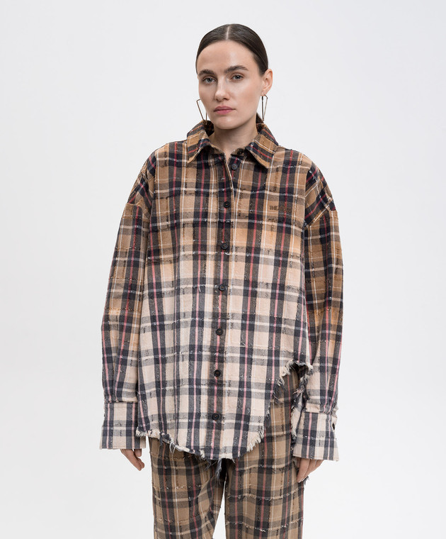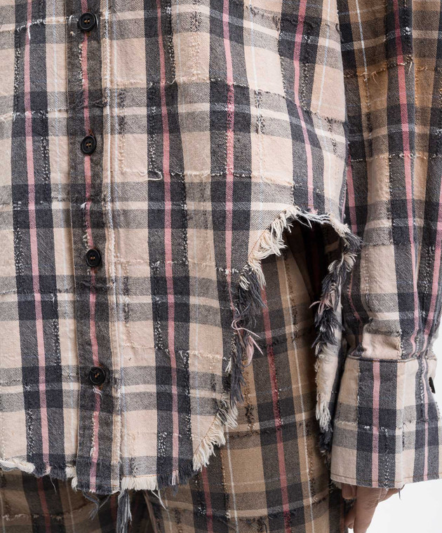 • Декор узор клетка, эффект деграде, вышивка логотипа, фигурный низ, необработанные края
