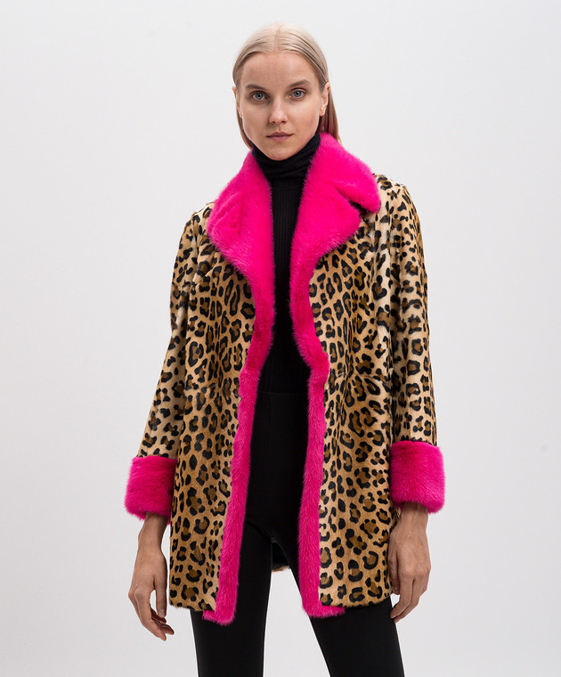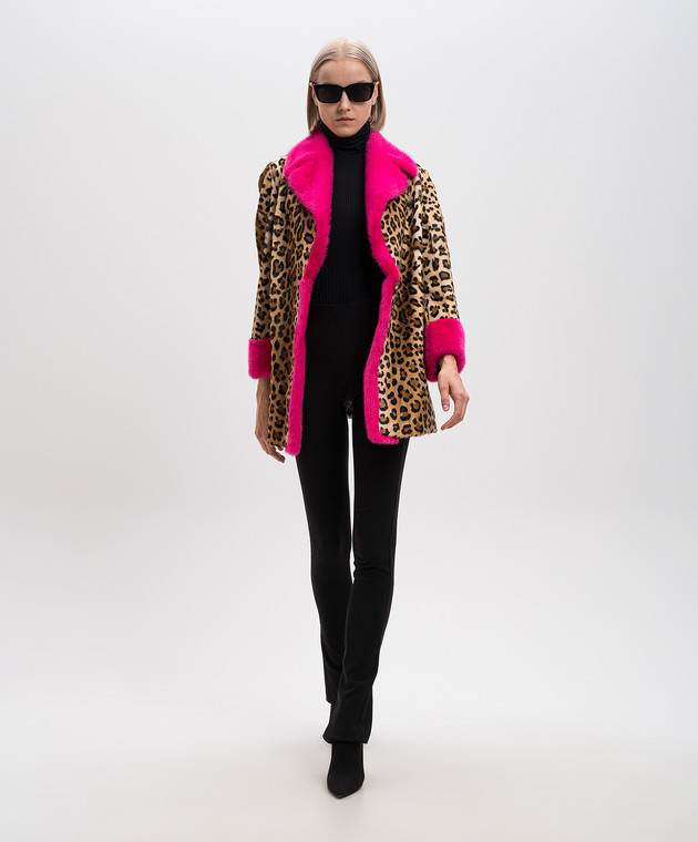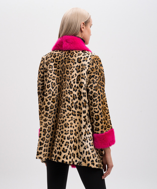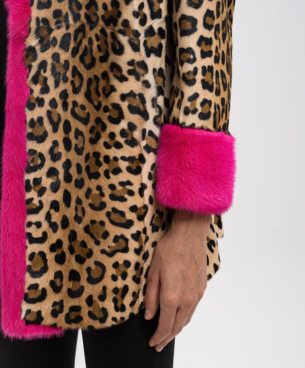 Бежевая шуба с анималистическим принтом