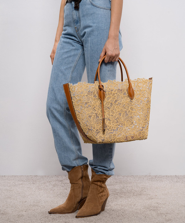 Бежевая сумка-тоут с вышивкой