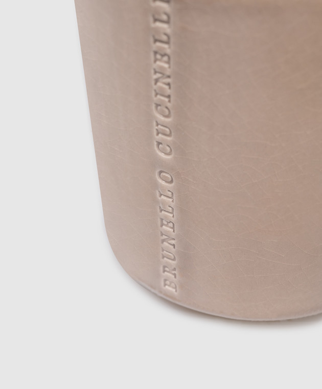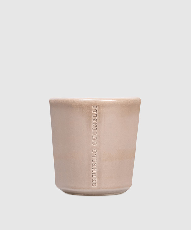 Бежевая свеча в керамическом подсвечнике с ароматом эбенового и тикового дерева