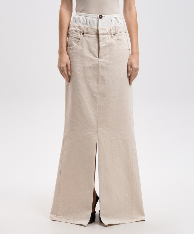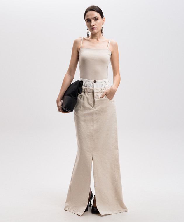 Бежевая юбка макси с разрезами