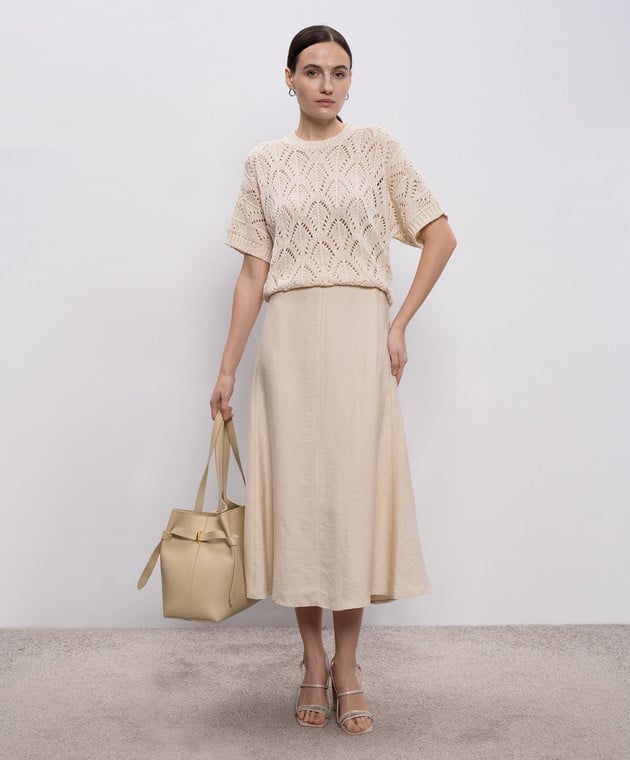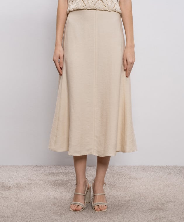 Бежевая юбка миди с льном