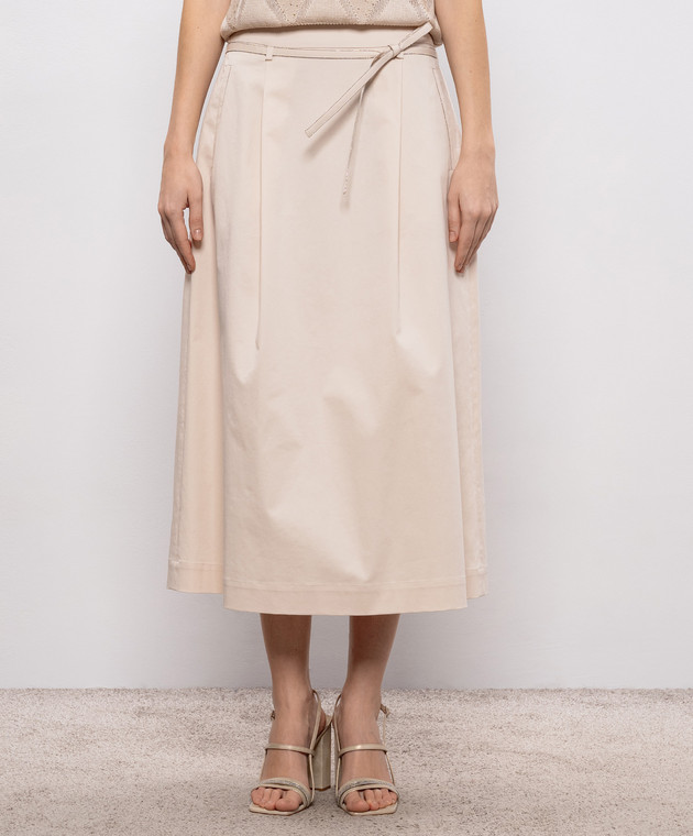 Бежевая юбка миди с поясом