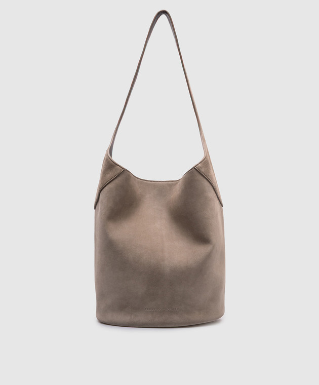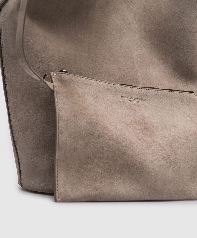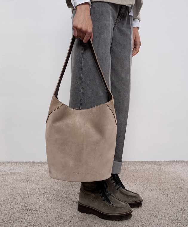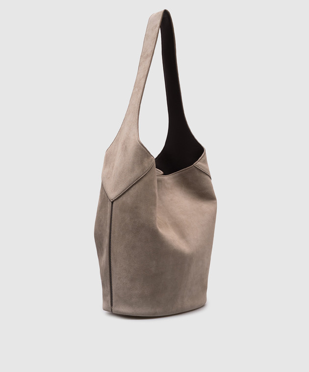 Бежевая замшевая сумка-тоут с цепочкой мониль