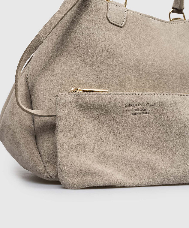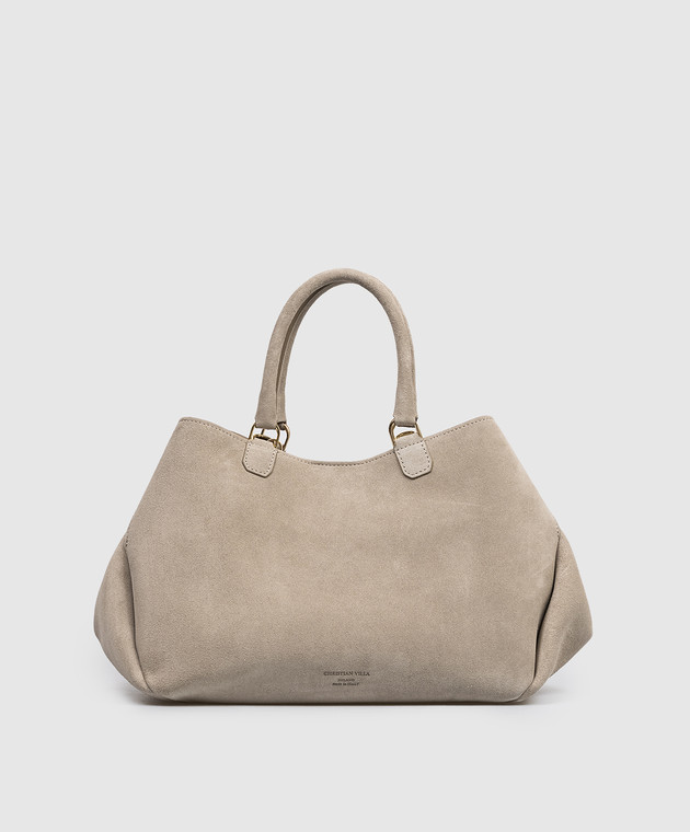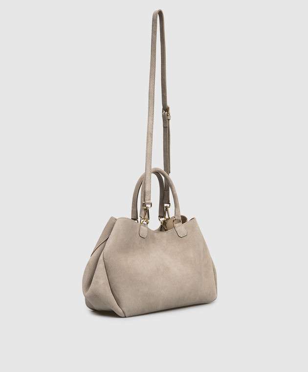 Бежевая замшевая сумка-тоут с тиснением логотипа