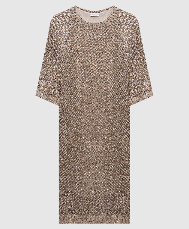 Бежевое ажурное платье с шелком и леном