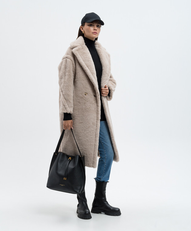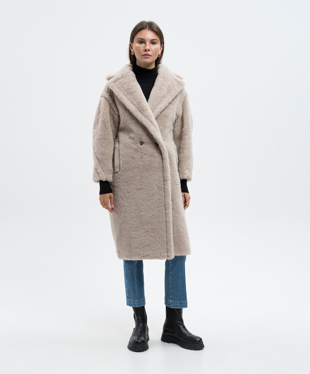 Бежевое двубортное пальто TEDGIRL из шерсти и шелка