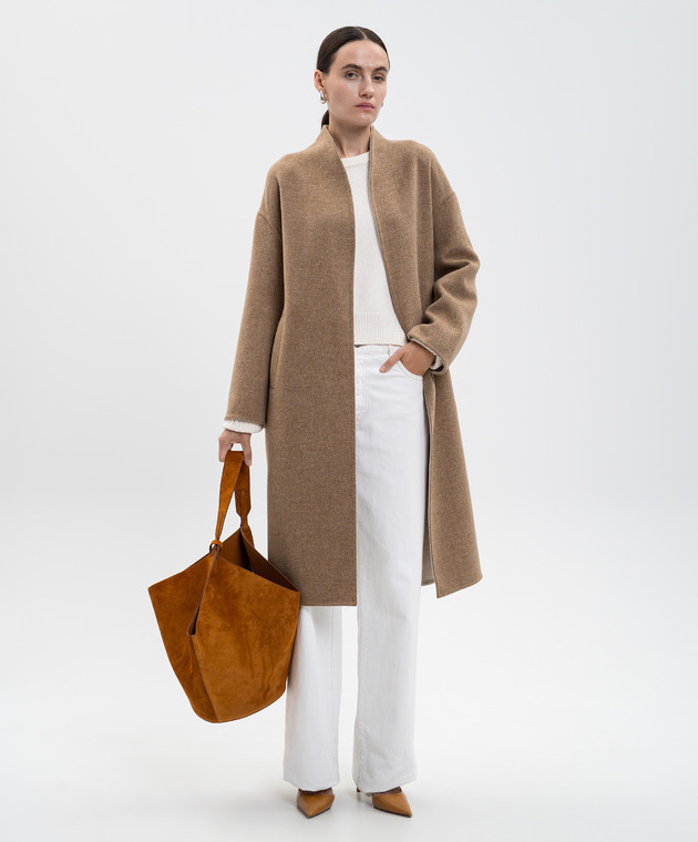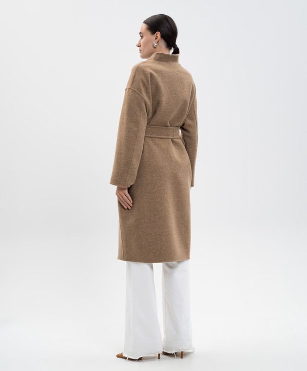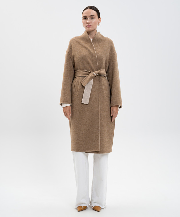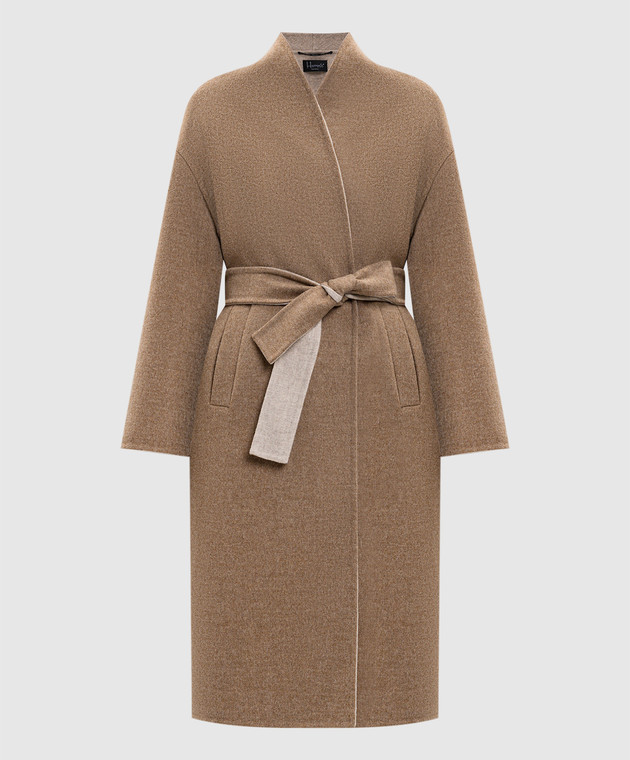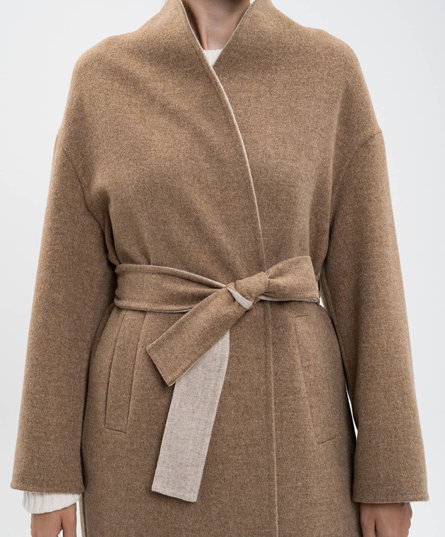Бежевое пальто на запах из шерсти
