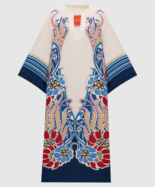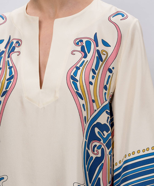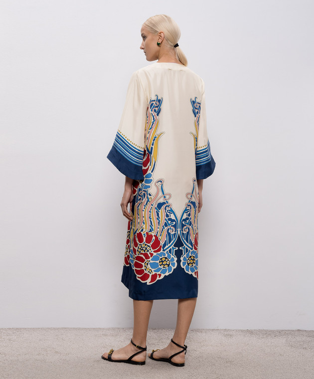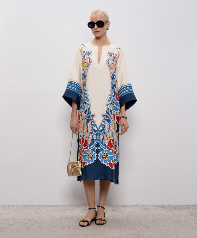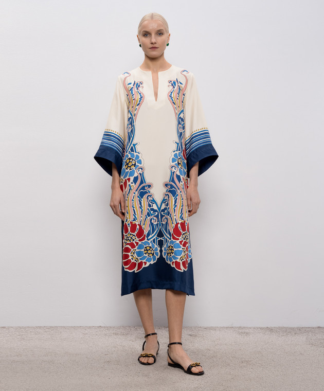 Бежевое платье из шелка в принт