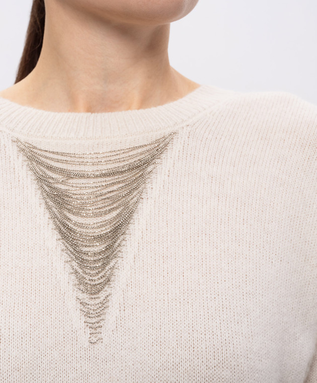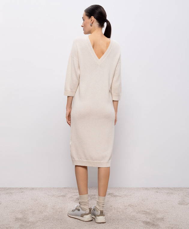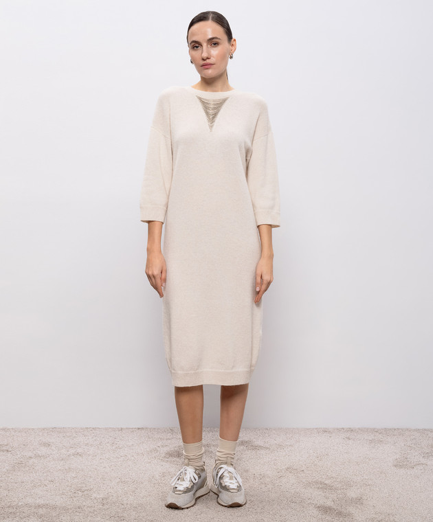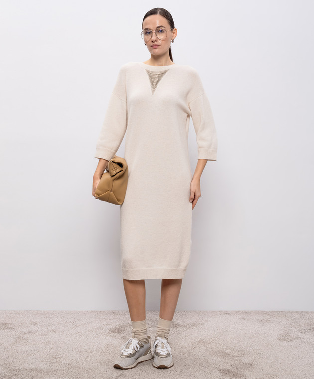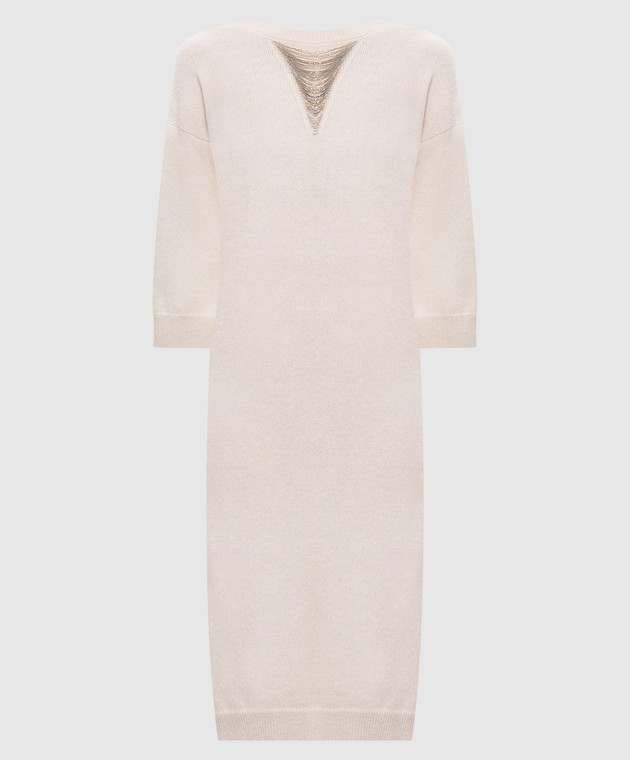 Бежевое платье из шерсти, шелка и кашемира с цепочкой мониль