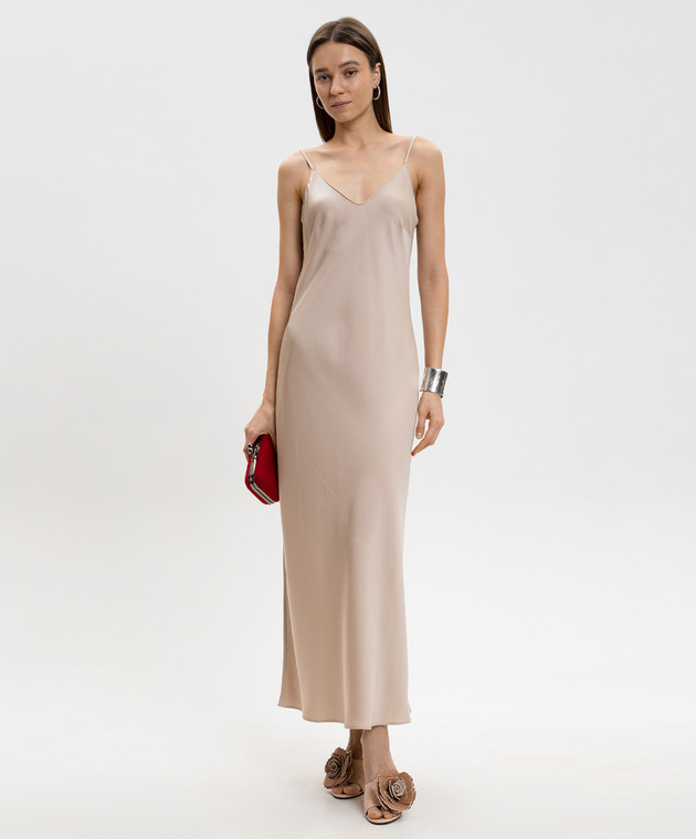 Бежевое платье макси из шелка