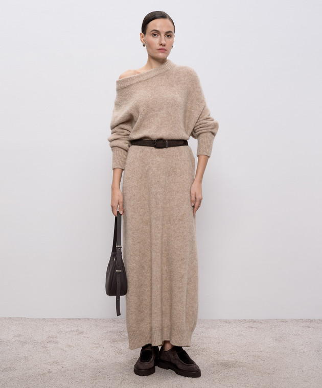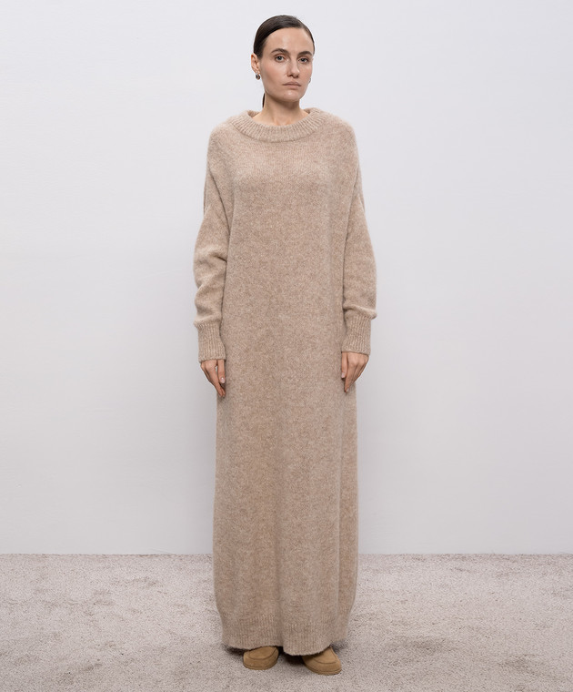 Бежевое платье макси с шерстью альпаки и кашемиром