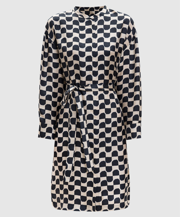 Бежевое платье PINZA из шелка в принт