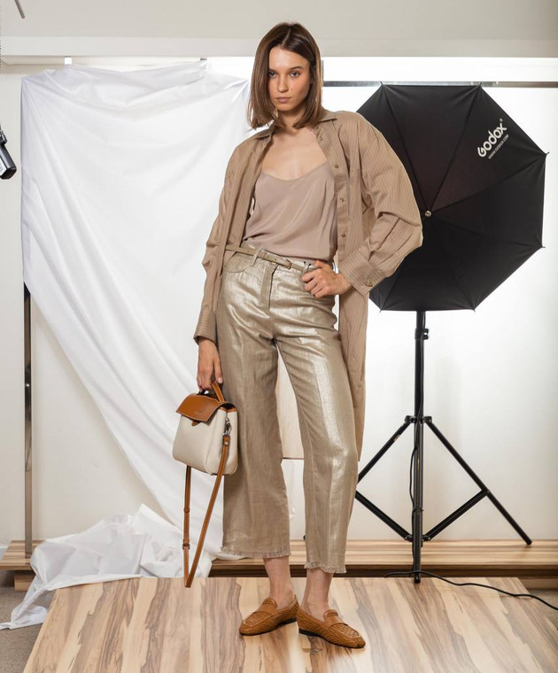 Бежевое платье-рубашка BRIOSO в полоску