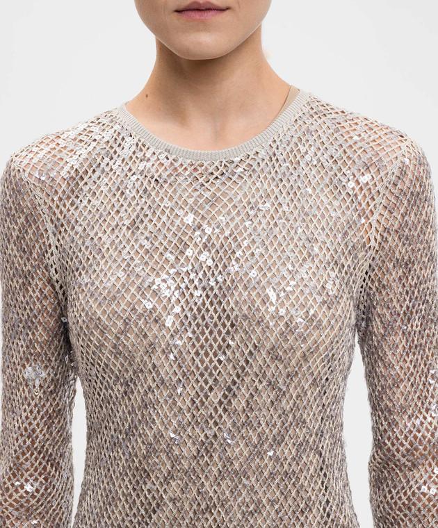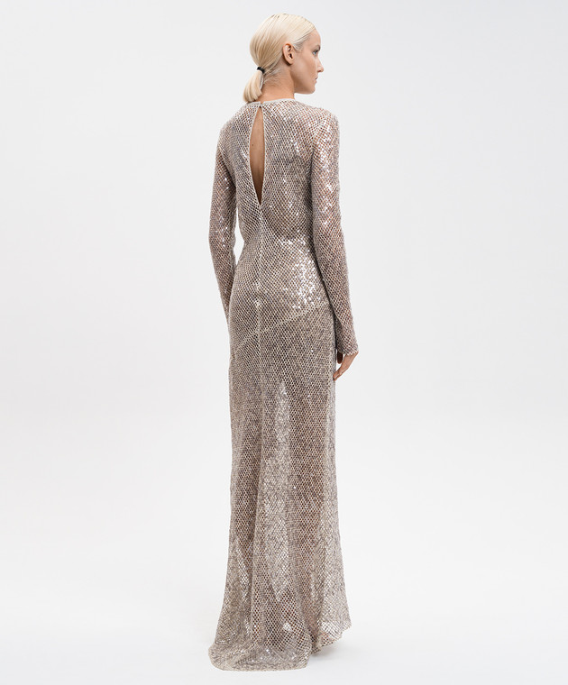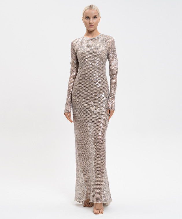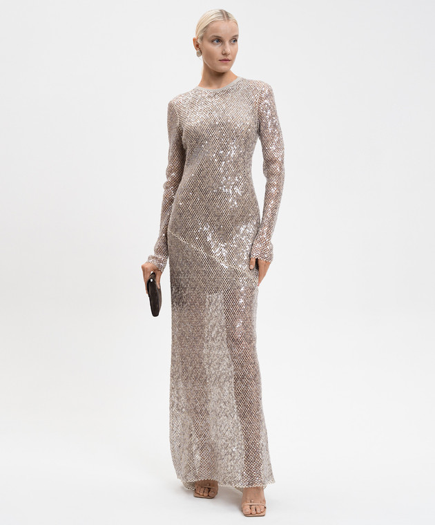 Бежевое платье с леном и шелком в пайетке