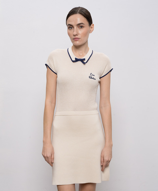 Бежевое платье с вышивкой логотипа
