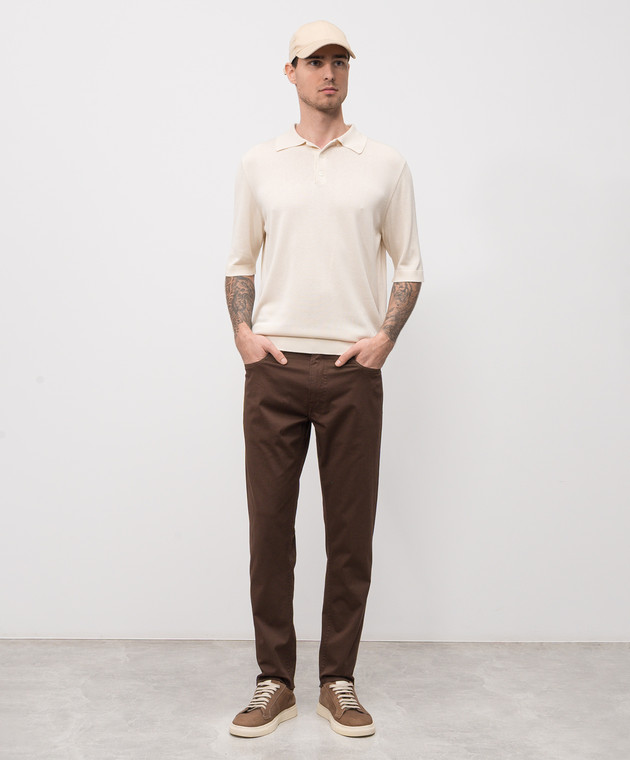 Бежевое поло из шелка