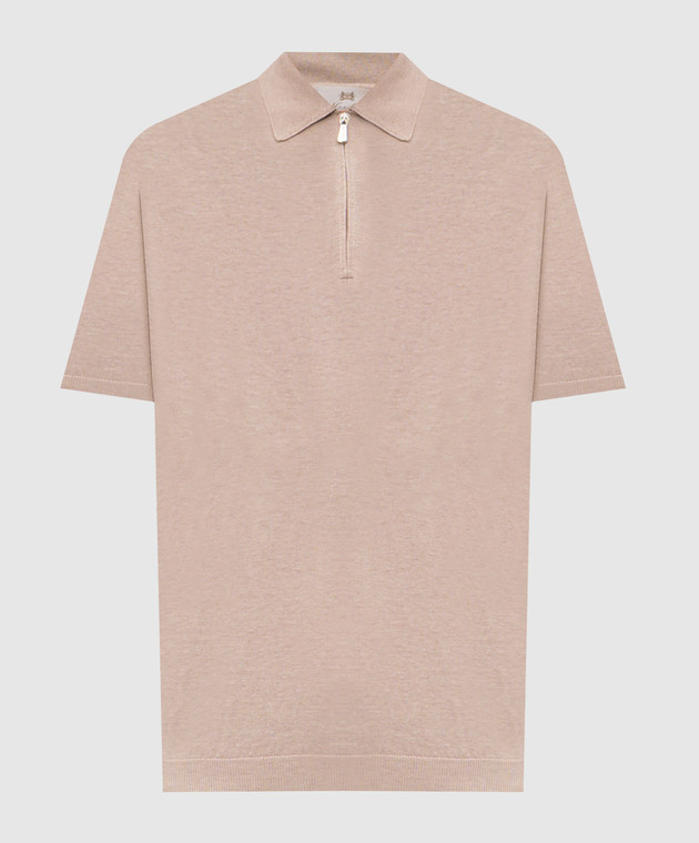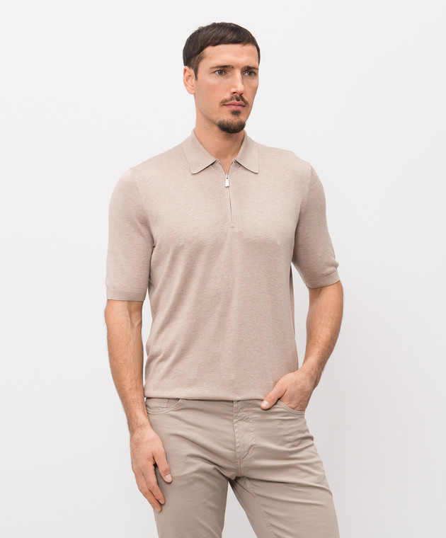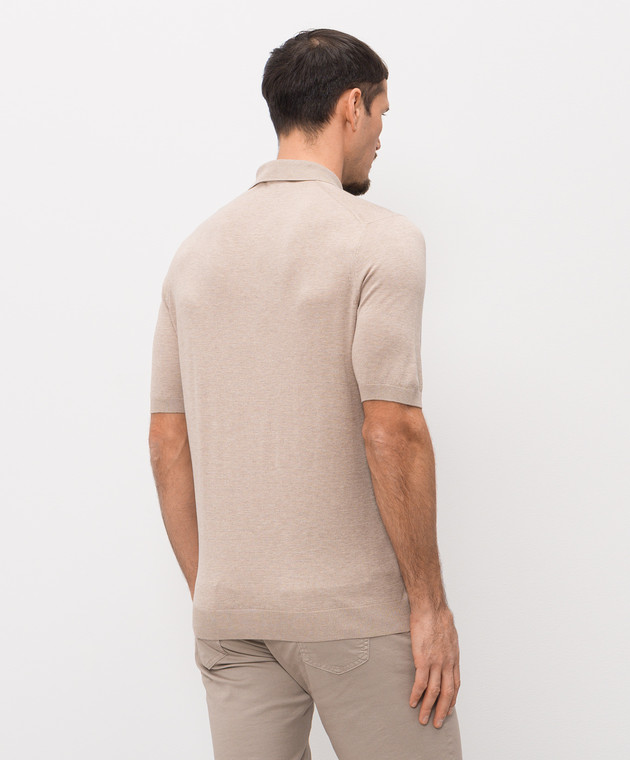 Бежевое поло из шелка с нашивкой логотипа