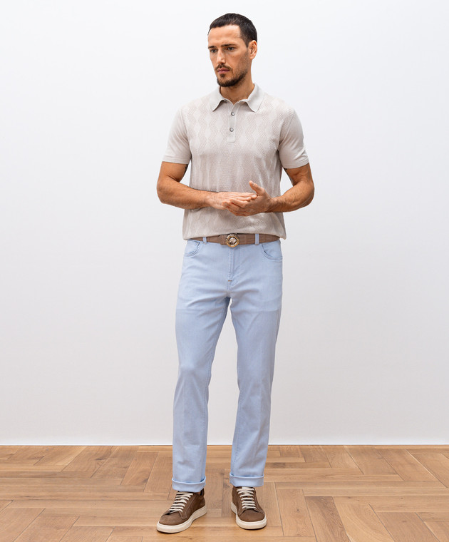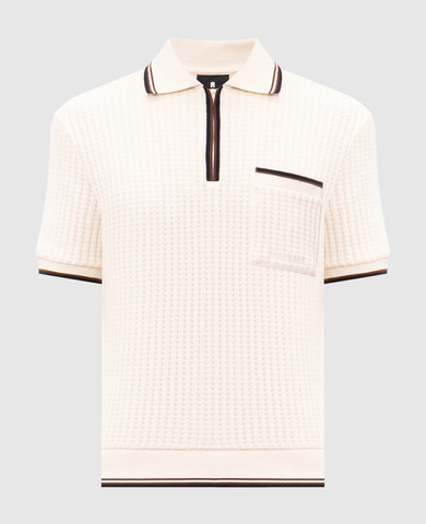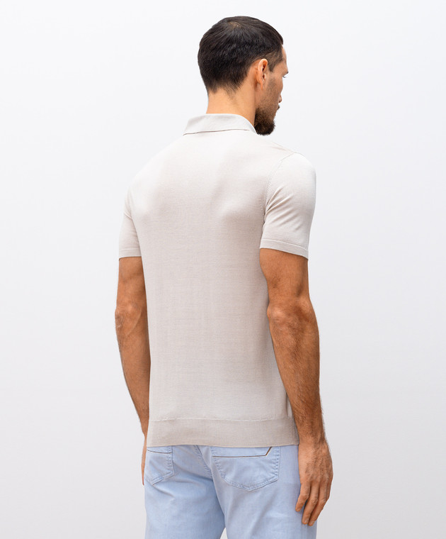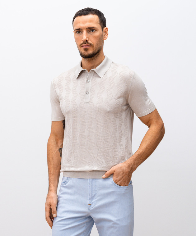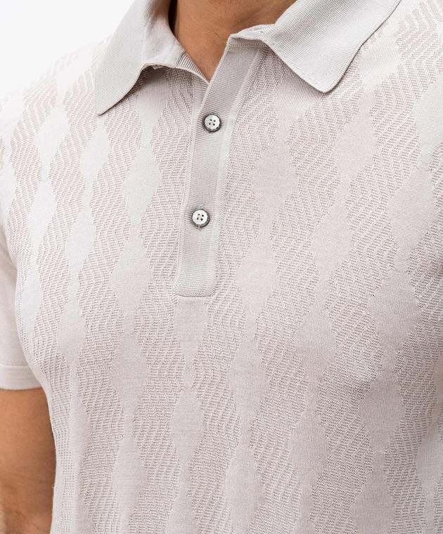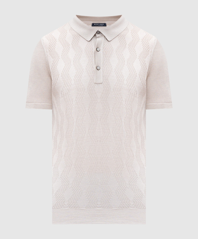 Бежевое поло из шелка в тканом узоре