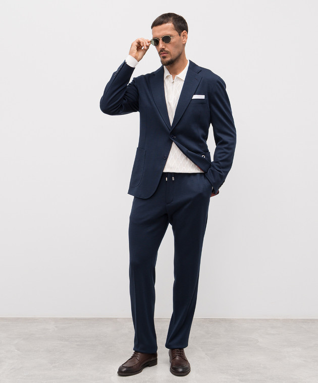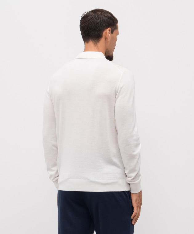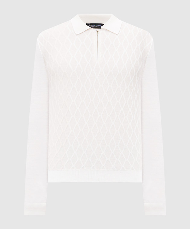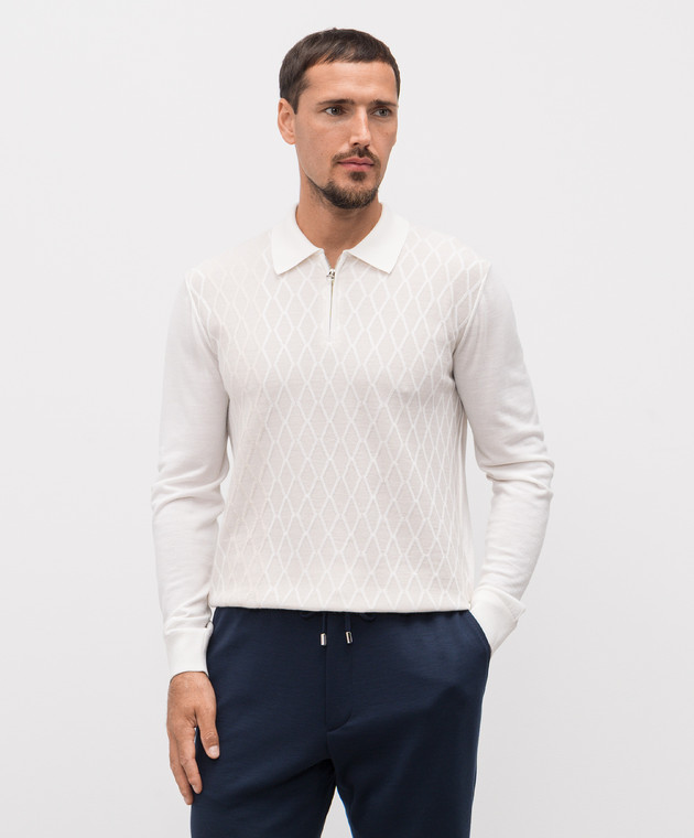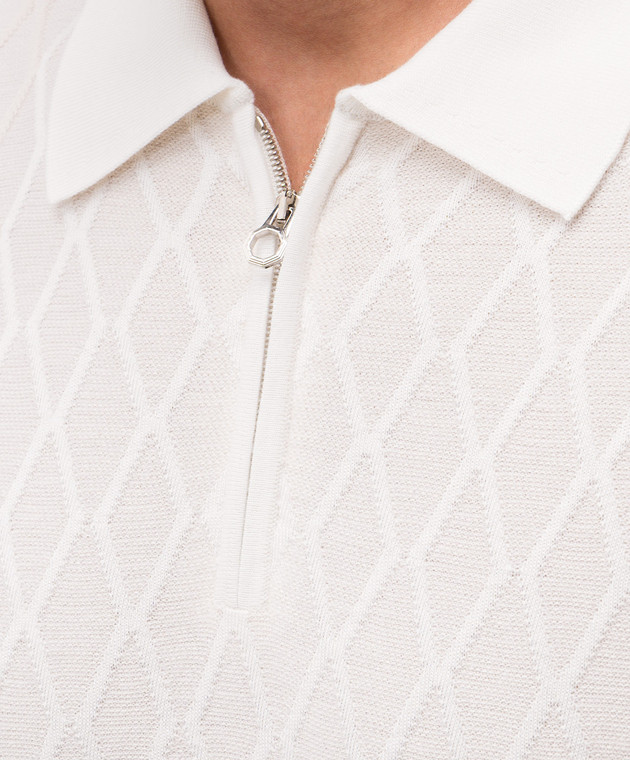 Бежевое поло из шерсти, кашемира и шелка в геометрический узор