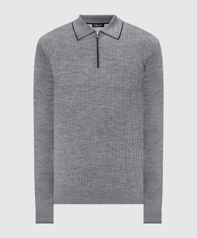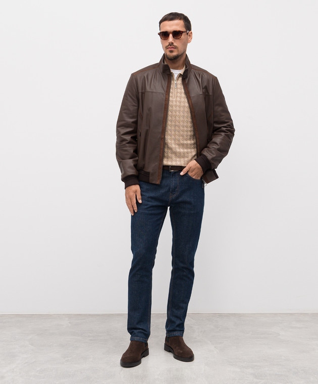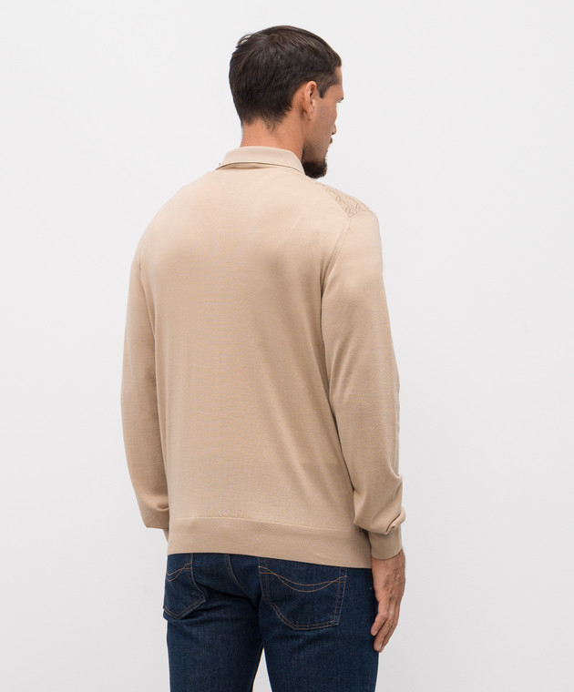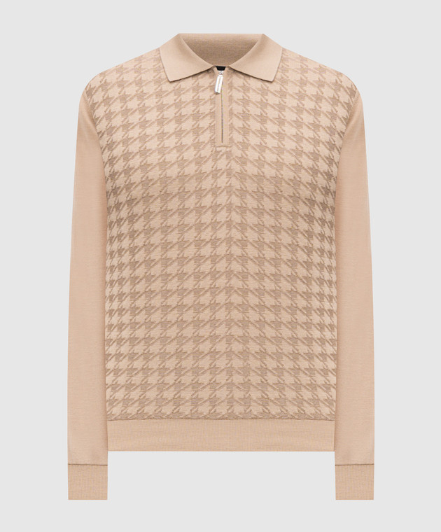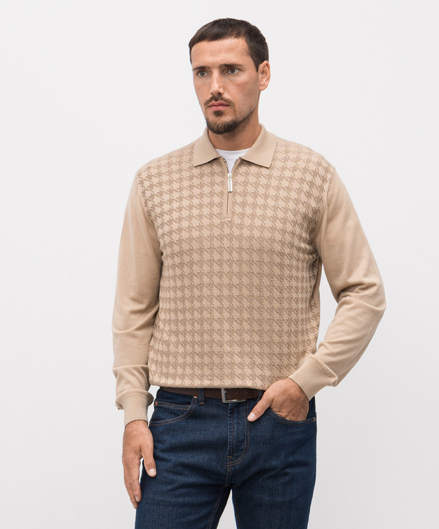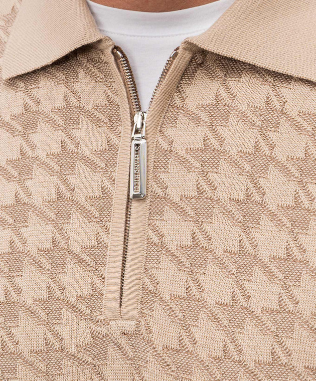 Бежевое поло из шерсти, шелка и кашемира в узор